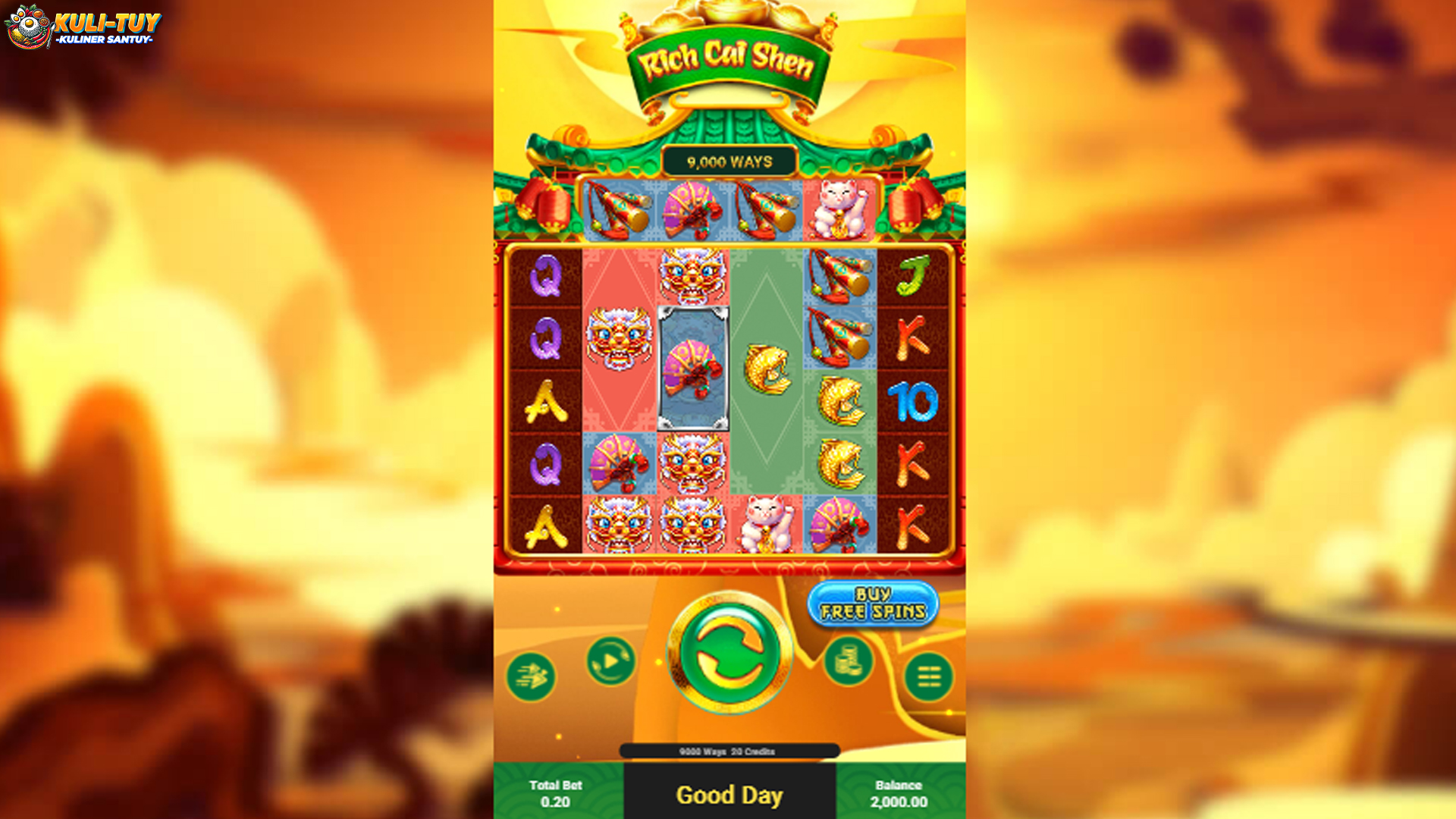 Dengan tema yang terinspirasi dari Caishen, dewa kekayaan dalam budaya Tiongkok, game ini menghadirkan simbol-simbol keberuntungan yang membuat setiap putaran semakin mendebarkan. Tidak hanya itu, efek visual dan musik yang ada juga memberikan atmosfer yang mendalam, seolah-olah kamu benar-benar berada di dunia yang penuh dengan keberuntungan dan kemakmuran.